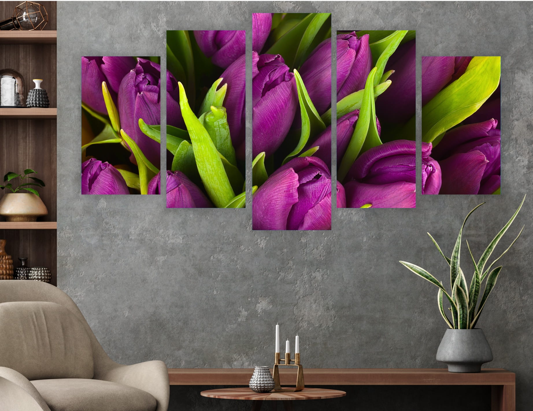 TULIPANY tryptyk 5 części na płótnie KWIATY DO SALONU