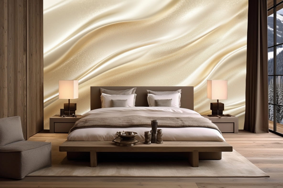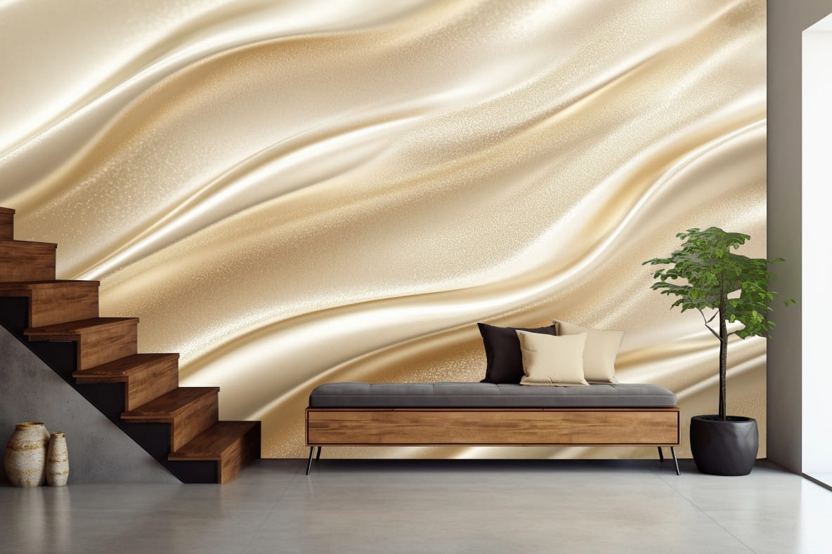Tapeta wzór 3D nowoczesna do salonu WAVES beżowe fale elegancja