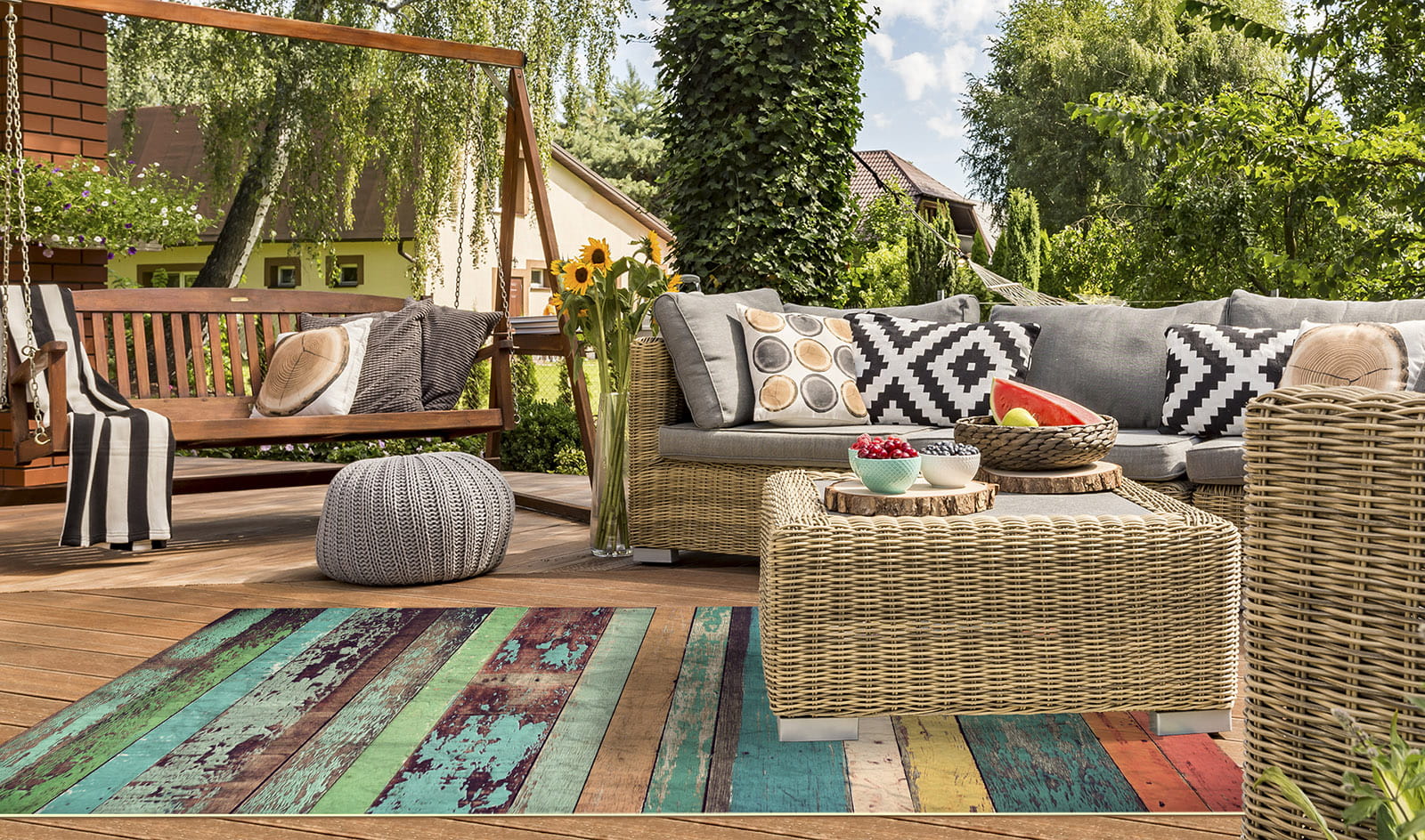 Winylowy dywanik tarasowy kolorowe deski