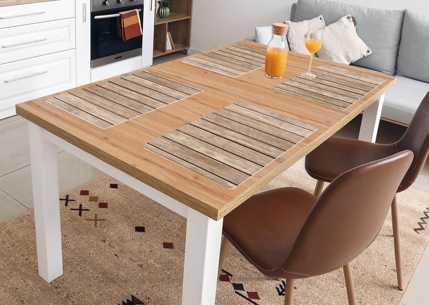 Zestaw 4 trwałych wytrzymałych, zmywalnych, winylowych podkładek na stół z nadrukiem - każda o wymiarze 44cm na 32 cm.