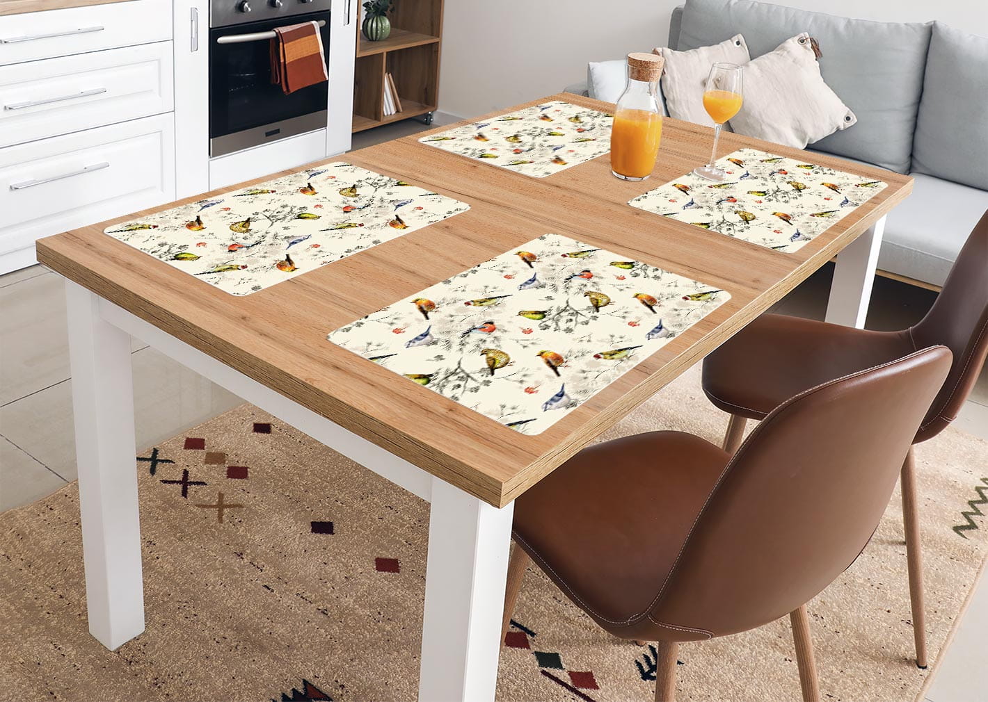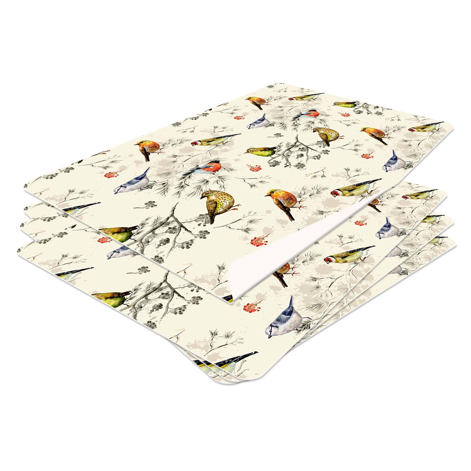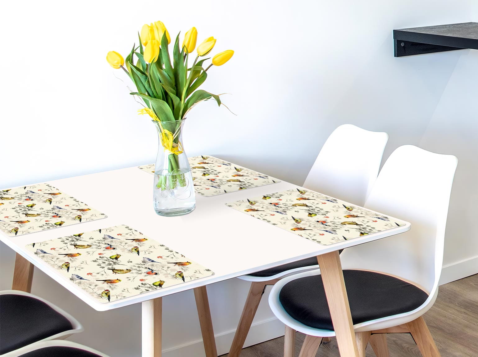 podkładki na stół zestaw 4 sztuk trwałe eleganckie malowane ptaszki